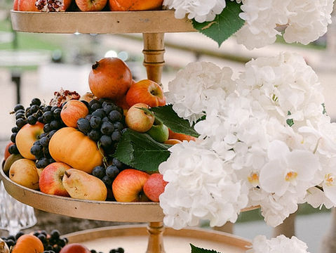 opulent French tablescapes, lavish flowers, and gilded fruits.